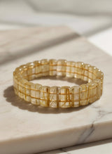 Illuminate your path to success and abundance with the radiant energy of the Golden Rutilated Quartz Bracelet, A powerful crystal of manifestation, clarity, and divine inspiration. Each bead glows with threads of shimmering golden rutile, like beams of sunlight captured within clear quartz, symbolizing the light of your highest intentions made real.
