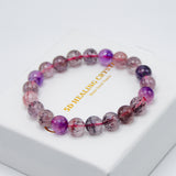 The Super Seven bracelet is believed to have powerful metaphysical properties due to its unique composition of seven different minerals: Amethyst, Cacoxenite, Goethite, Lepidocrocite, Rutile, Smoky Quartz, and Clear Quartz. These minerals are often combined into a single stone, also known as Melody Stone or Sacred Seven.