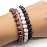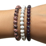 This trio bracelet is a gentle yet powerful combination for emotional healing, inner peace, and spiritual clarity. Together, Rhodonite, Howlite, and Amethyst create a harmonious flow of energies that calm the mind, soothe the heart, and uplift the spirit, ideal for those on a healing journey or seeking emotional renewal and balance.