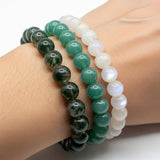 This enchanting bracelet combines the energies of Earth and Moon to support emotional healing, inner growth, and soulful renewal. The synergy between Moss Agate, Green Aventurine, and Moonstone creates a nurturing field that gently guides the heart toward peace, balance, and intuitive clarity.