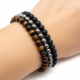 Hematite enhances this stabilizing effect with its natural magnetic energy and iron-rich composition. Hematite is a stone of the mind and body connection, promoting clarity, focus, and logical thinking. It strengthens your aura and reflects negativity, while keeping you rooted in the present moment. This makes it especially useful during stressful situations or decision-making.