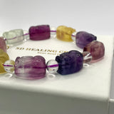 Fluorite boosts the immune system and stimulates the regeneration and restructuring of cells and DNA, particularly in the skin and respiratory tract, and heals ulcers and wounds. Fluorite strengthens bone tissue, and alleviates rheumatism, arthritis and spinal injuries. It improves the discomfort of shingles and other nerve-related pain.