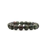 Dragon’s Blood Jasper is a striking stone, known for its deep green background with red inclusions reminiscent of dragon’s scales and blood.
