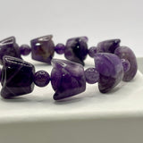 Amethyst is a powerful and protective stone. It guards against psychic attack, transmuting the energy into love and protecting the wearer from all types of harm, including geopathic or electromagnetic stress and ill wishes from others. Amethyst is a natural tranquiliser, it relieves stress and strain, soothes irritability, balances mood swings, dispels anger, rage, fear and anxiety. Alleviates sadness and grief, and dissolves negativity. Amethyst activates spiritual awareness, opens intuition and enhances psychic abilities. It has strong healing and cleansing powers. Amethyst encourages sobriety, having a sobering effect on overindulgence of alcohol, drugs or other addictions. It calms and stimulates the mind, helping you become more focused, enhancing memory and improving motivation. Amethyst assists in remembering and understanding dreams. It relieves insomnia. Encourages selflessness and spiritual wisdom.