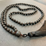 A wide variety of materials are used to make mala beads : seeds of rudraksha, tulsi, wood or sandalwood, seeds of Lotus plant, yak bone, shells, semiprecious stones and resin.
