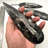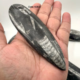 Orthoceras, also known as Orthoceratites, is a genus of extinct nautiloid cephalopod. Its name is derived from the words “straight horn”, referring to it’s long, conical shell. These creatures roamed the seas during the Ordovician Period (485 million - 443 million years ago). They are the ancient ancestors of ammonites and squid that can be found in sizes ranging from a centimeter to over 14 feet long. Orthoceras are commonly found on a rock matrix,most of the time being limestone. A majority of specimens on the market have been coming out of Morocco, Scandinavia, Sweden, and the Baltic states.