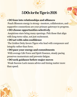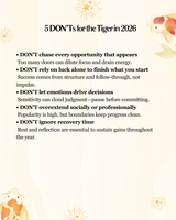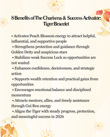The Charisma & Success Activator 2026 TIGER Bracelet: PHP1200.00 2026 Forecast for the Tiger In 2026, the Tiger stands in a rare energetic position — surrounded by currents of luck gathering from every direction. While your raw Success Luck (Lung Ta) is weak, the year compensates by delivering external blessings, powerful encounters, and strategic openings that can dramatically alter your path when handled wisely.