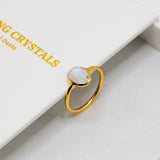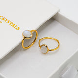 A Moonstone ring features the moonstone gemstone, known for its ethereal glow and soft, milky appearance. Moonstone is a member of the feldspar family and is prized for its adularescence, a phenomenon that gives the stone a glowing, moon-like sheen. This makes moonstone jewelry particularly captivating and meaningful.