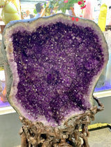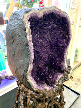 A Uruguayan Amethyst Geode attracts positive, spiritual energy into your body and space. It calms and cools excessive emotions and eases you into a more meditative state. By clearing unnecessary mental clutter, an Amethyst Geode creates more harmony within your spirit.