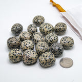 Dalmatian Jasper is a distinctive stone characterized by its cream or beige color with black or brown spots, resembling the coat of a Dalmatian dog. Here are some common uses and beliefs associated with it: