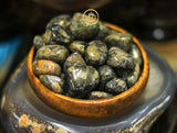 The name is coined from the popular song of the 1950's, Que-Sera, Sera(What will be, will be), and was taken in part from Quartz with Undulatory Extinction (QUE) with "Sera" added for the metamorphic conditions which created the mineral combination. This stone comes from one of the "Grand Formations" of our planet, and while some tumbled specimens may not display the blue clasts, each minute piece of the combination carries the properties of the combined whole. Though it is somewhat similar in appearance to Vulcanite and the variety of Rhyolite known as Llanite or Llanoite (also sold under the name "Blue Liberite), the Que-Sera Stone is found only in Brazil, and carries a higher, more awakened energy. [Melody En,