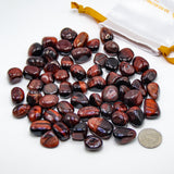 Red Tiger’s Eye, also known as Dragon’s Eye, is a striking stone with deep red and brown hues that exhibits a chatoyant, or “cat’s eye,” effect. This stone is known for its grounding, energizing, and protective properties. Here are some common uses of Red Tiger’s Eye tumbled stones: