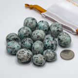 Kiwi Jasper, also known as Sesame Jasper, is a variety of jasper characterized by its light green color with black and speckled inclusions. It’s a nurturing stone with several metaphysical properties: