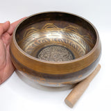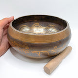 Using the Mallet: Gently strike the bowl to create a sound, then run the mallet around the bowl’s rim to maintain the tone. This sound can help focus the mind and deepen meditation.
